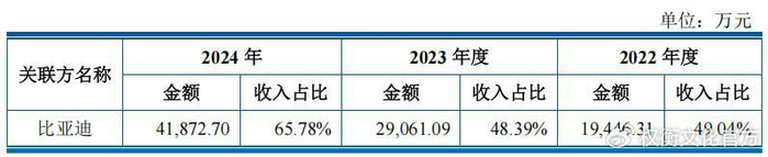 對單一客戶比亞迪重大依賴及關聯交易占比較高