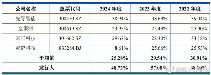 尚水智能選取了以鋰電設備為主營業務的先導智能、金銀河、宏工科技、靈鴿科技作為同行業可比上市公司,公司的毛利率整體高于同行業平均水平30.91%、29.54%和25.28%,主要是由于公司在產品類型、應用環節、技術含量及行業地位等方面與可比公司存在較大差異。