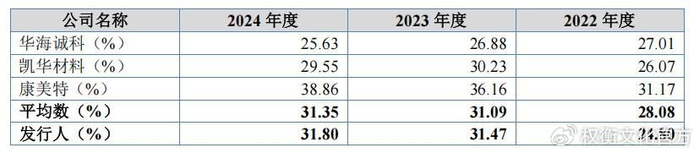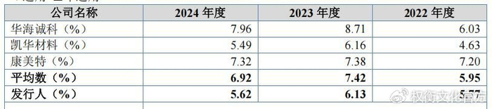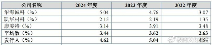 報告期內,創達新材綜合毛利率水平和波動趨勢與可比公司平均值不存在顯著差異。2022年,公司綜合毛利率水平低于可比公司;2023年、2024年,公司綜合毛利率水平與凱華材料基本相當,高于華海誠科,低于康美特。