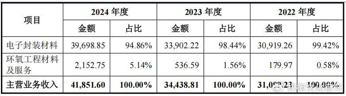 創達新材主營業務為高性能熱固性復合材料的研發、生產和銷售,目前主要產品包括環氧模塑料、液態環氧封裝料、有機硅膠、酚醛模塑料和導電銀膠等電子封裝材料,廣泛應用于半導體、汽車電子及其他電子電器等領域的封裝,同時提供電子行業潔凈室工程領域環氧工程材料及服務。