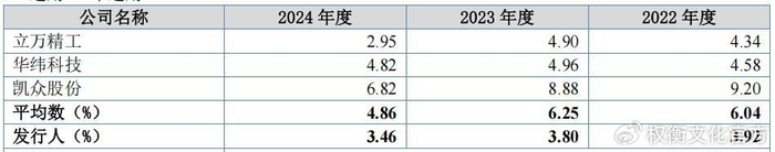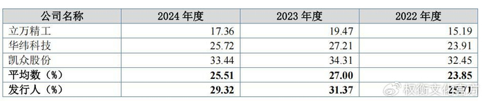 報告期內,公司的綜合毛利率分別為25.71%、31.37%和29.32%,高于同行業可比公司均值,2024年毛利率下降2.05個百分點。與可比同行均值相似,都是起伏走高。