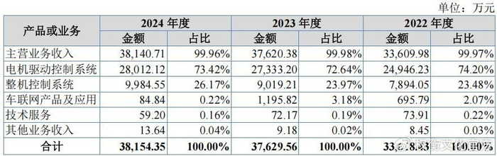 權(quán)衡財(cái)經(jīng)iqhcj注意到,公司的主營業(yè)務(wù)收入由電機(jī)驅(qū)動控制系統(tǒng)、整機(jī)控制系統(tǒng)、車聯(lián)網(wǎng)產(chǎn)品及應(yīng)用與技術(shù)服務(wù)業(yè)務(wù)構(gòu)成,報(bào)告期內(nèi),電機(jī)驅(qū)動控制系統(tǒng)業(yè)務(wù)銷售收入占比分別為74.20%、72.64%和73.42%,為公司銷售業(yè)務(wù)的核心組成部分;整機(jī)控制系統(tǒng)業(yè)務(wù)銷售占比整體在20.00%至30.00%之間,為公司第二大收入來源。