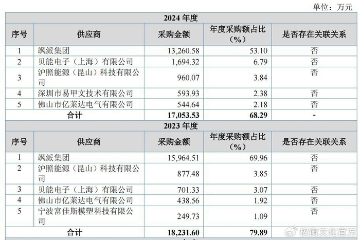 報(bào)告期內(nèi),嘉晨智能向前五大供應(yīng)商采購電機(jī)控制器、接觸器及其他電子元器件等原材料的金額分別為1.319億元、1.823億元和1.705億元,占當(dāng)期采購總額的比例分別為65.47%、79.89%及68.29%,占比較高。