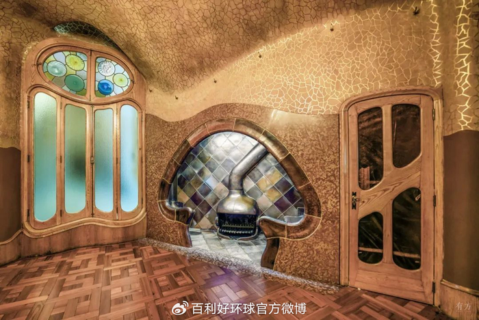 建筑的每一個細節(jié)都訴說著功能與美學(xué)的完美統(tǒng)一。主樓層是昔日巴特羅家族生活的核心,巨大的波浪形天花板象征著海洋的力量,形狀奇特的蘑菇狀壁爐兼具實用與浪漫。