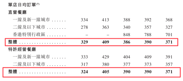 報告期內,其直營餐廳的單店日均銷售額分別為11881元、13997元、12410元、11805元;特許經營餐廳的單店日均銷售額分別為11672元、13554元、12376元、11493元。