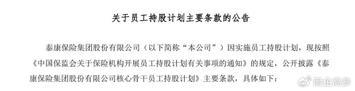 國慶前一天,泰康保險集團連發兩份公告,核心內容均圍繞其“員工持股計劃”展開,進一步推動內部激勵機制的落地。