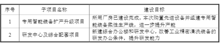 表:智能工業清洗設備生產研發基地項目(二期)建設目標