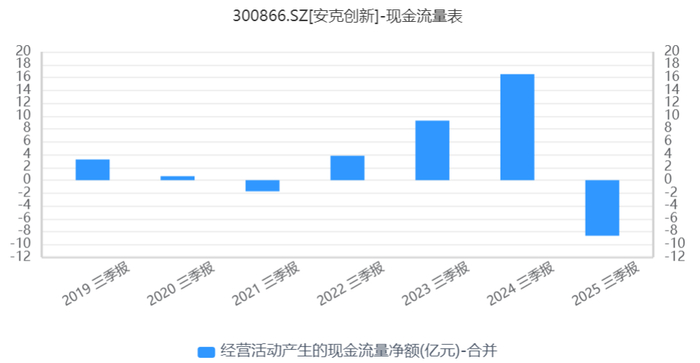 具體而言,前三季度安克創新資產減值損失達2.90億元,同比大增73.10%,主要即源于召回產品的存貨減值。同時,公司經營性現金流凈額從去年同期的16.51億元急劇惡化至今年前三季度的-8.65億元?,F金流的告負,不僅反映了事件的直接財務成本,也引發了市場對其短期營運資金壓力的擔憂。
