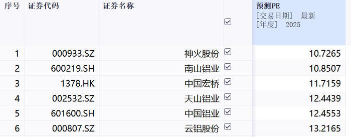 圖片說明:電解鋁企業2025年估值對比,數據來源于同花順