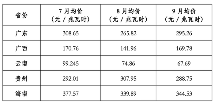 圖片說明:2025年南方五省7-9月現貨均價情況,數據來源于電力交易中心、國能日新微信公眾號