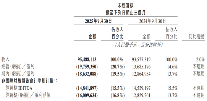 圖片說明:美團2025年第三季報財務摘要,數據來源于美團財報