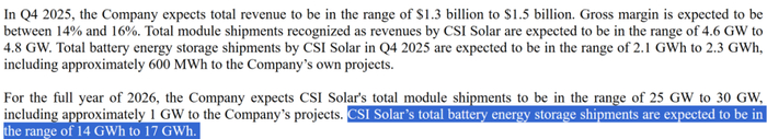 圖片說明:CSIQ在2025Q3季報中給出的業績指引,數據來源于CSIQ財報