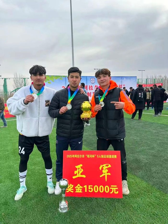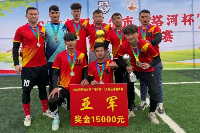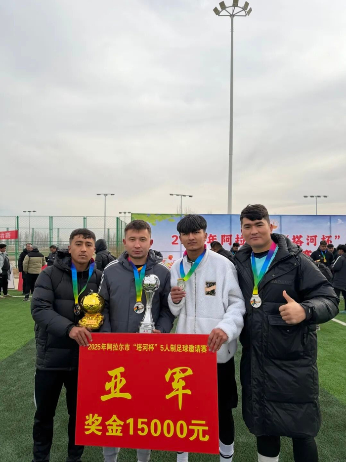 為了在 “塔河杯” 賽場交出亮眼答卷,第三師圖木舒克市從籌備階段便傾注全力。 清晨的寒霜還未散去,他們已開始繞場慢跑進行體能儲備;正午的陽光炙烤著草坪,戰術板前的討論仍熱烈不休,從攻防站位到快速傳切,每一個細節都反復打磨;傍晚的余暉中,對抗訓練后的隊員們不顧汗水浸透球衣,圍著礦泉水瓶復盤得失,互相糾正動作偏差。正是這份日復一日的堅持與付出,讓隊伍在短時間內凝聚起強大的向心力,為賽事征程筑牢了根基。比賽中,隊員們將集訓成果充分展現,小組賽穩扎穩打,憑借扎實的基本功和默契配合以小組前列晉級;淘汰賽面對實力強勁的對手,他們頂住壓力、敢打敢拼,最終一路闖進決賽,捧回亞軍獎杯!