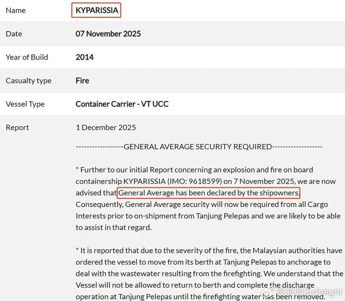 據了解,目前該船的貨損仍在評估,船東已宣布共同海損。