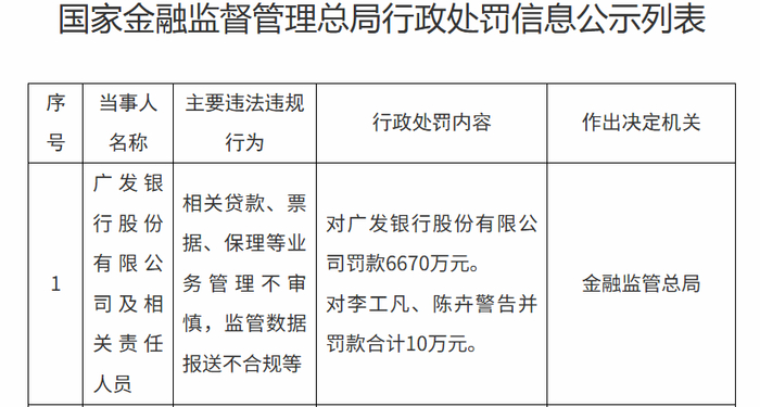 從總行層面來看,2025年9月,廣發(fā)銀行因“相關(guān)貸款、票據(jù)、保理等業(yè)務(wù)管理不審慎,監(jiān)管數(shù)據(jù)報送不合規(guī)等”違規(guī)行為,被國家金融監(jiān)管總局處以6670萬元罰款。這是廣發(fā)銀行2025年內(nèi)最大一筆罰單,即使放在股份行里也是名列前茅。