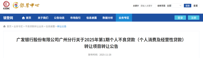 11月28日,廣發(fā)銀行廣州分行在銀登網(wǎng)披露的一則轉(zhuǎn)讓公告,揭開了該行新一輪個人不良貸款處置的序幕。