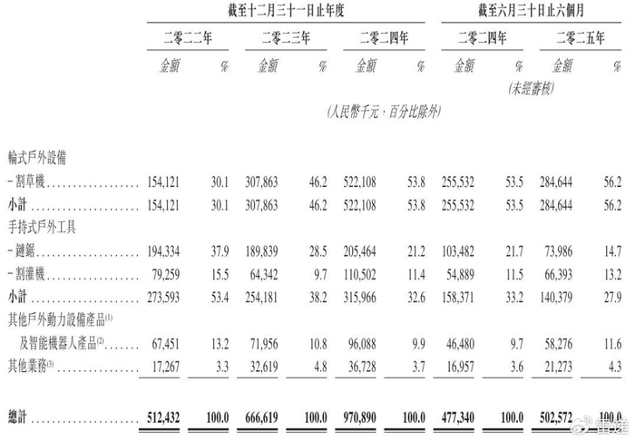 中堅科技2025年上半年來自割草機的收入2.85億,占比56.2%;來自鏈鋸收入7399萬,占比14.7%;來自割灌機收入6639萬元,占比為13.2%。