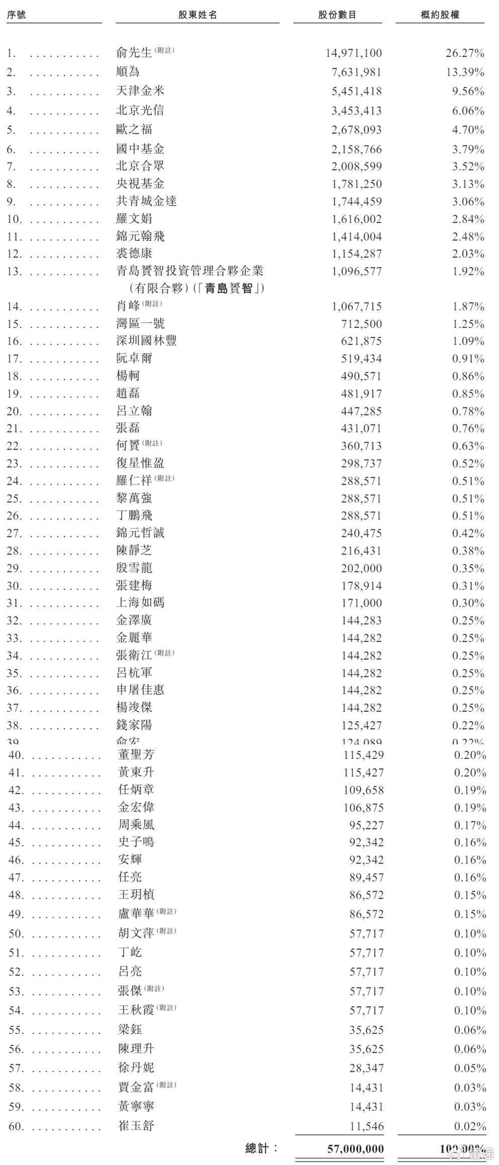 此外,順為持股為13.39%,小米旗下天津金米持股為9.56%,北京光信持股為6.06%,歐之福持股為4.7%,國中基金持股為3.79%,北京合眾持股為3.52%,央視基金持股為3.13%,共青城金達(dá)持股為3.06%;