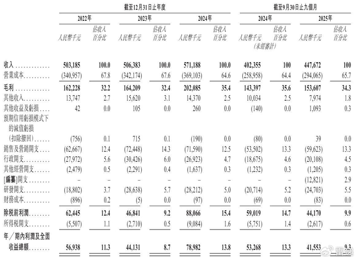 銅師傅2025年前9個月營收為4.48億元,較上年同期的4億元增長12%;毛利為1.54億元,毛利率為34.3%;期內(nèi)利潤為4155萬元,較上年同期的5327萬元下降22%。