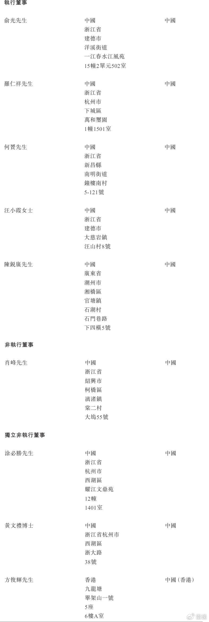 銅師傅執(zhí)行董事分別為俞光、羅仁祥、何贇、汪小霞女士、陳銳廣;非執(zhí)行董事為肖峰,獨立非執(zhí)行董事分別為涂必勝、黃文禮博士、方俊輝。